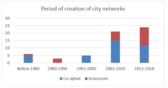 From this follows a second finding, i.e. the distinction between co-opted and grassroots networks. The former, sponsored by external funding bodies, adhere to their agenda. This is true for the URBACT network which stems from the Urban Agenda of the European Union. The latter are spontaneous organisations formed by local authorities in want of sharing a space for common concerns. In the field of migration, this is illustrated by politicised networks opposing state policies: the sanctuary policies movement in the US, the ANVITA association in France, etc. Of course, these categories are porous. Eurocities is a grassroots European network created in the late eighties which is now largely funded by EU institutions. However, the initial conditions of their creation explain the divergent orientations of their activities. Both types foster exchange of experience and best practices, but co-opted organisations have more financial means to support projects while grassroot ones are more likely to engage in lobbying and awareness-raising activities.